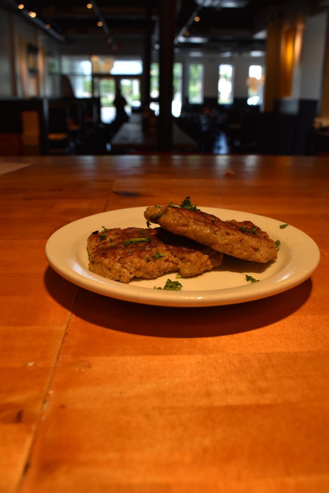 Our Sunrise Social signature honey butter biscuit cut in half and served with a choice of egg, cheese, and sausage