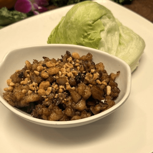 Lettuce wrapped with chicken, mush-room & pepper in chef special sauce