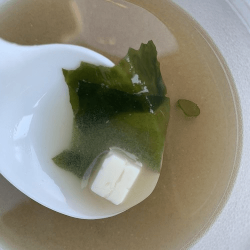 Seaweed tofu & scallions in soy bean broth