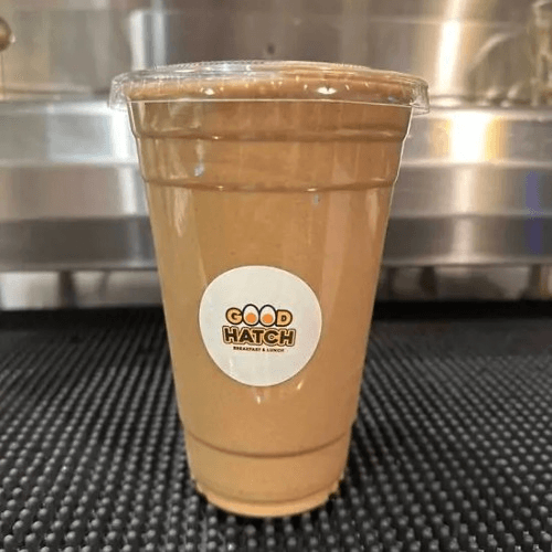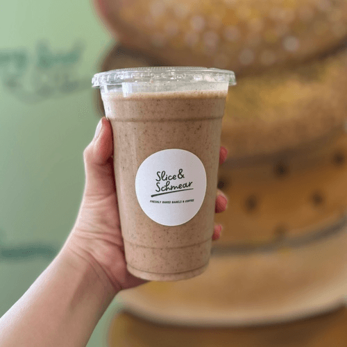 Iced coffee, banana, chocolate protein powder
