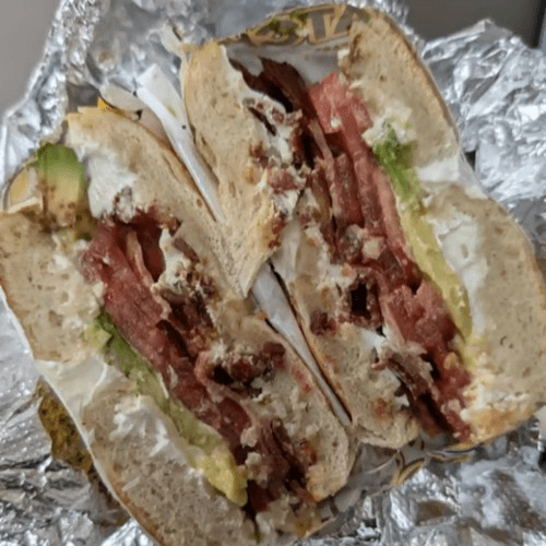 Cream cheese, applewood smoked bacon, tomato, avocado on your choice of bagel
