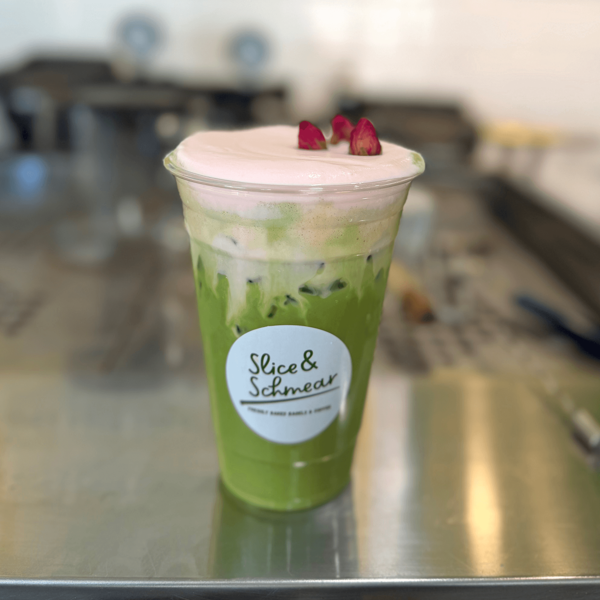 Organic Ceremonial matcha, ice, vanilla, rose cold foam, milk (alt) Note: Rose cold foam has dairy
