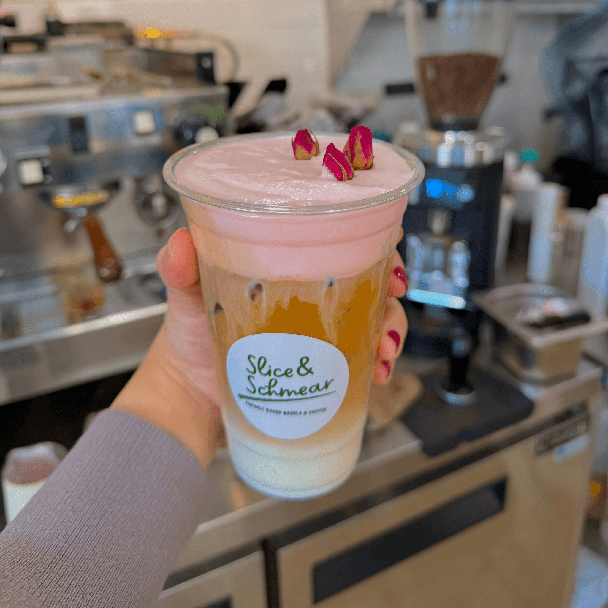 Espresso, ice, vanilla, rose cold foam, milk (alt) Note: Rose cold foam has dairy