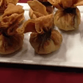 Chicken and shrimp hidden in wonton skin d to golden brown and served with plum sauce.
