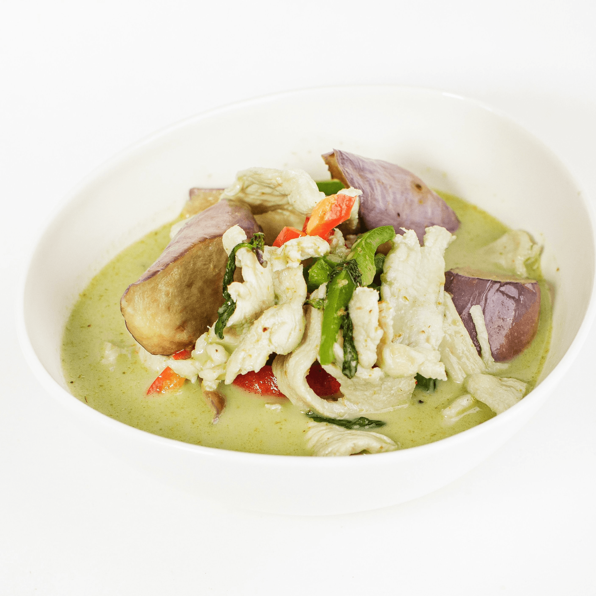 Traditional Thai Red Curry served with Kobocha pumpkin, bell pepper, bamboo, basil, and choice of meat.