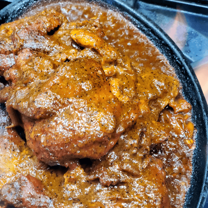 Grilled beef mixed with lime juice, onions tomatoes and mint leaves in a smoked chili dressing. Spicy.