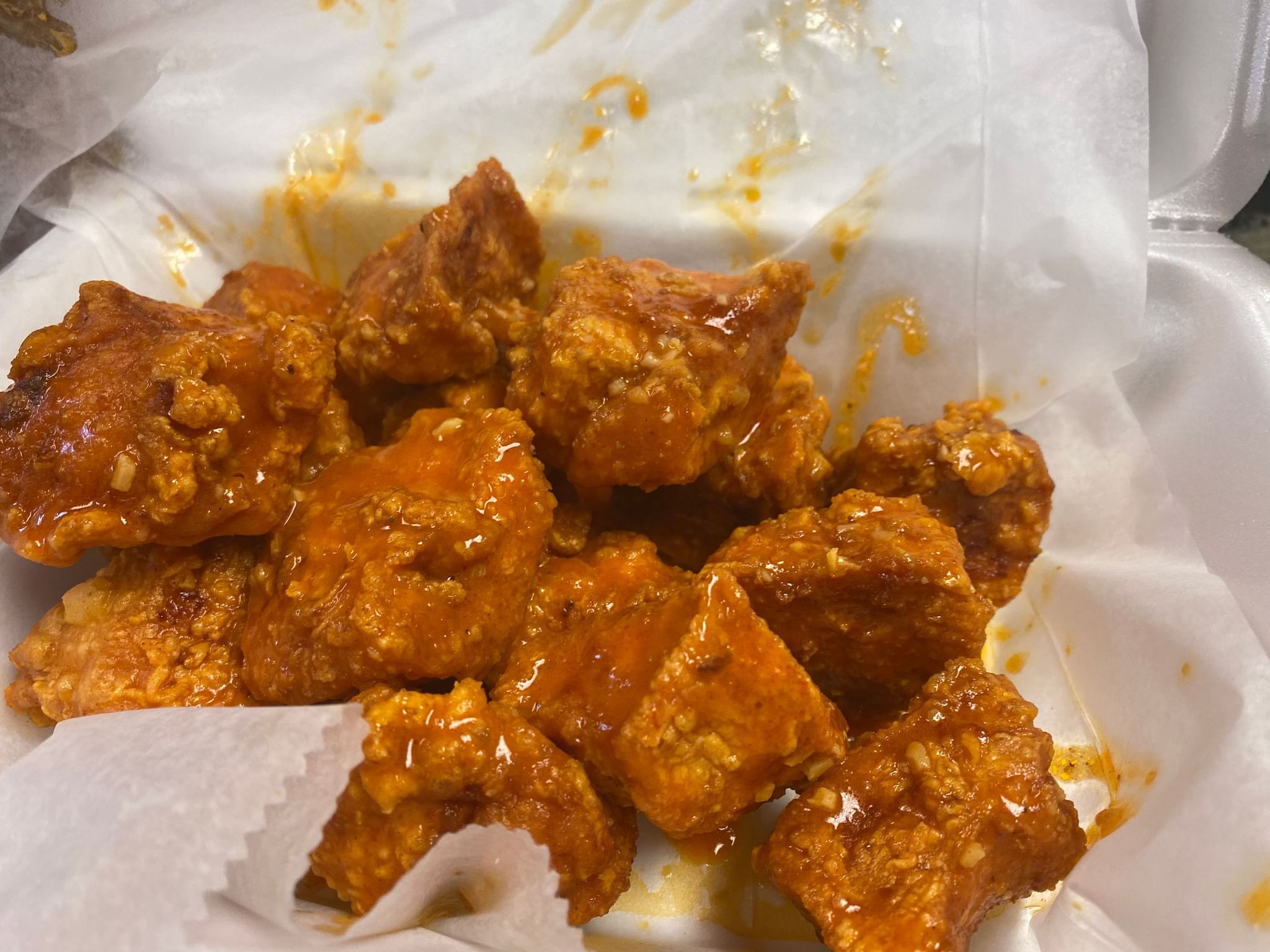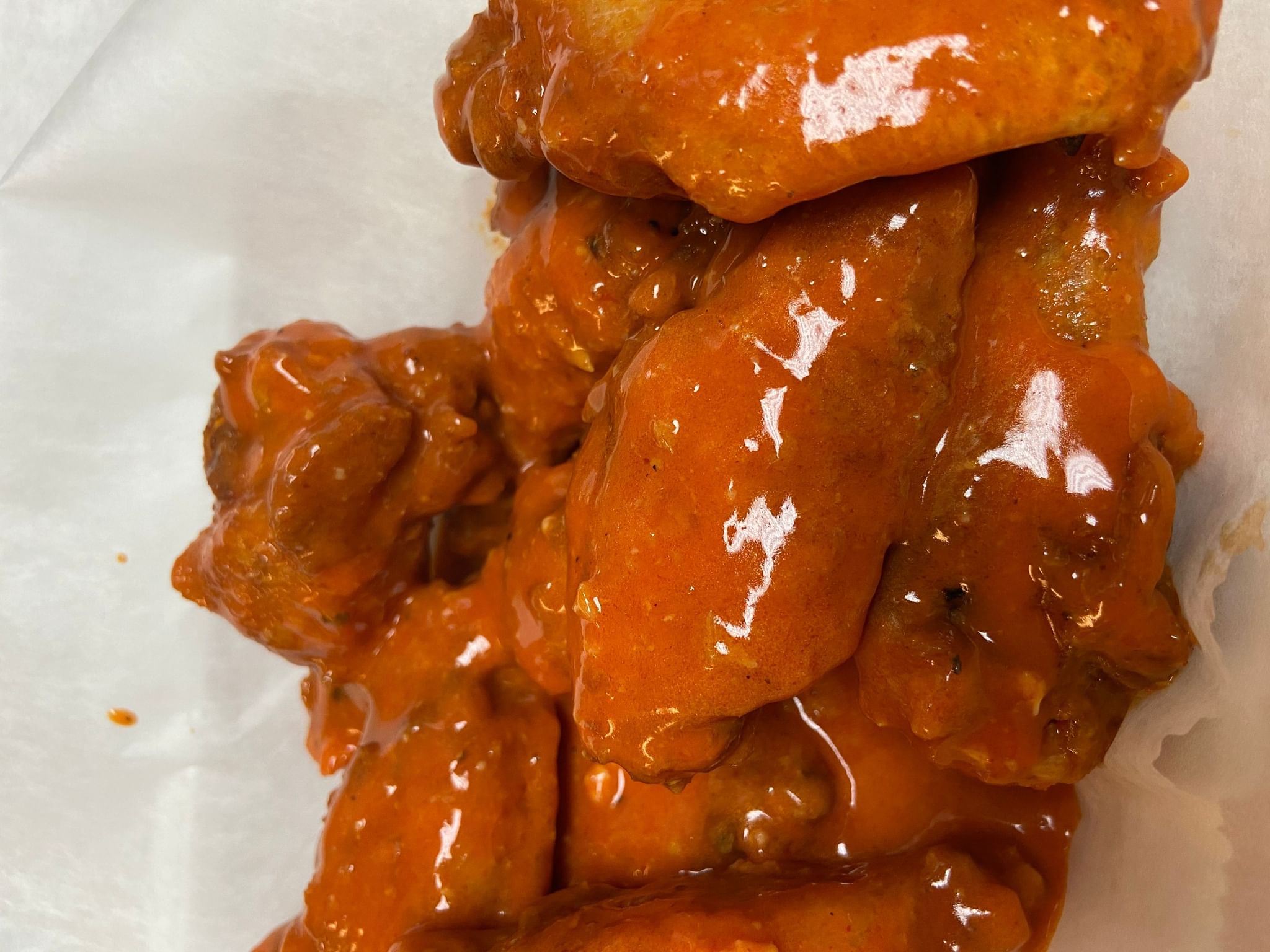 Served with bleu cheese and celery with sauces mild, hot, Buffalo, garlic, Cajun, garlic Parmesan, BBQ, or sweet and tangy