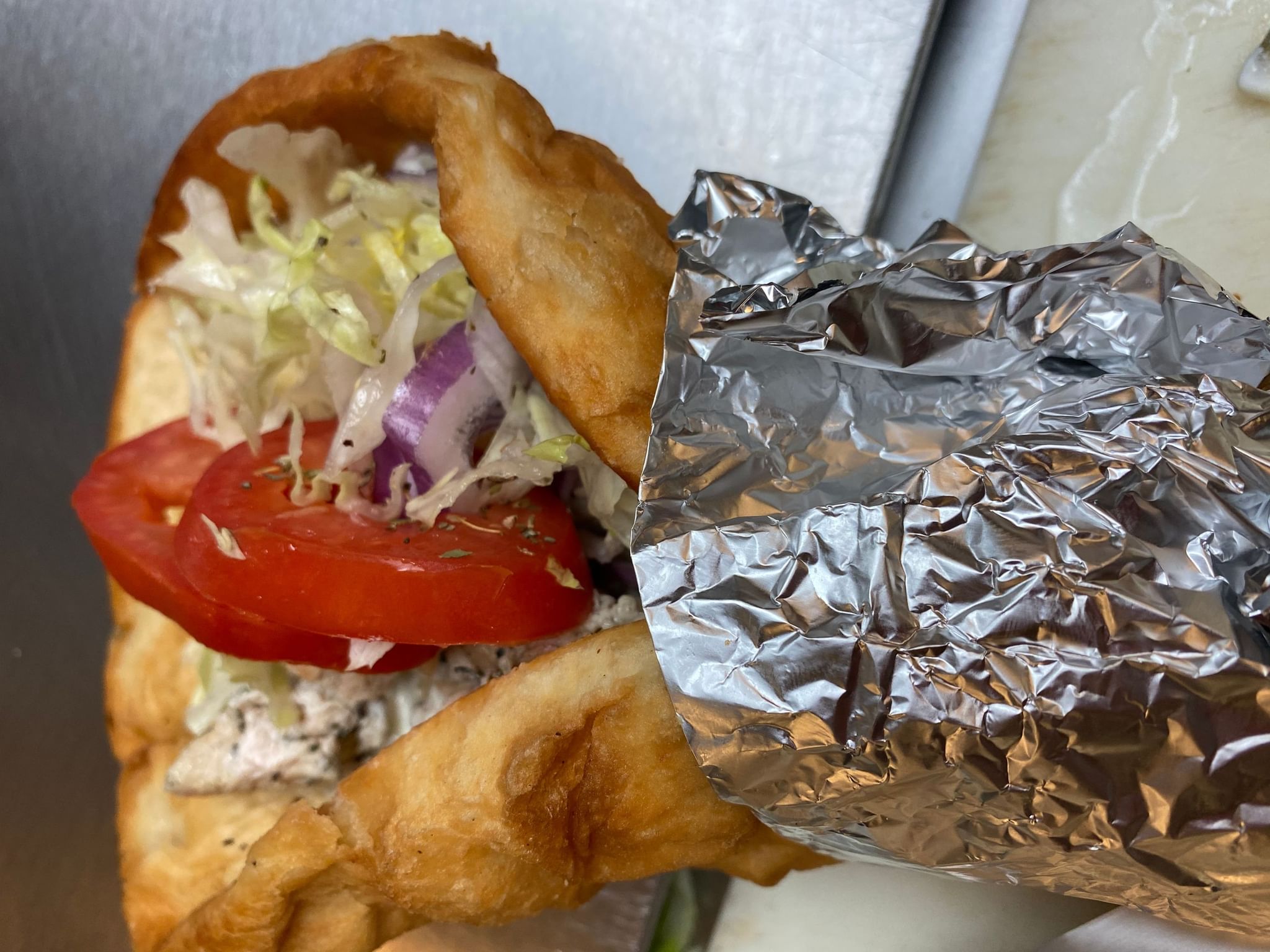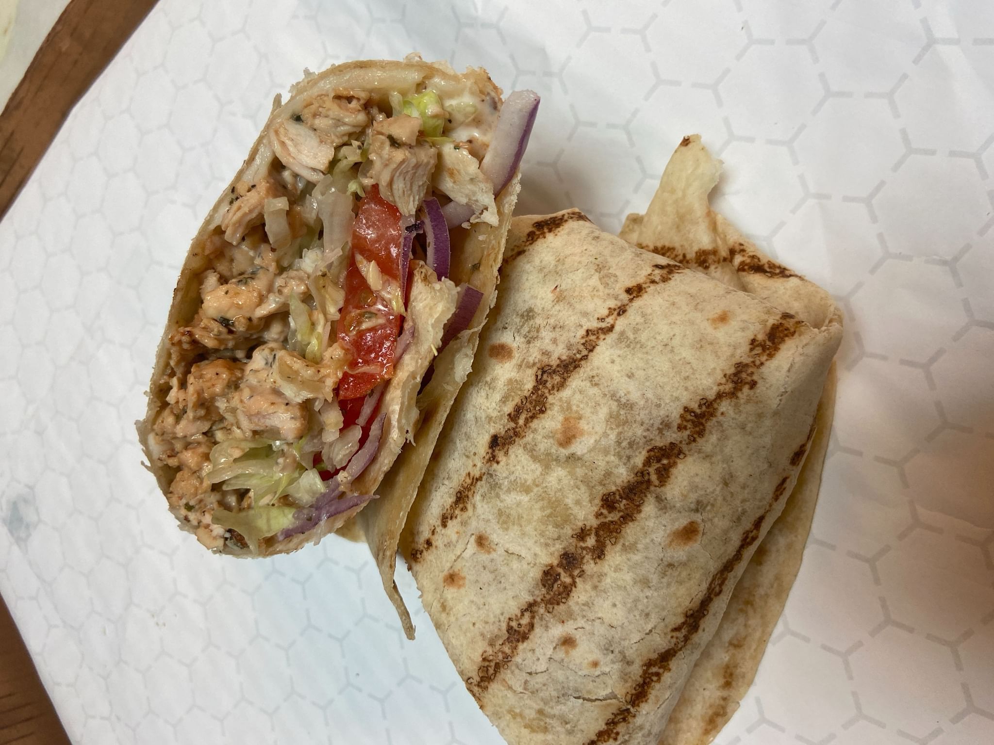 Spicy breaded chicken, feta cheese, lettuce and tomatoes
