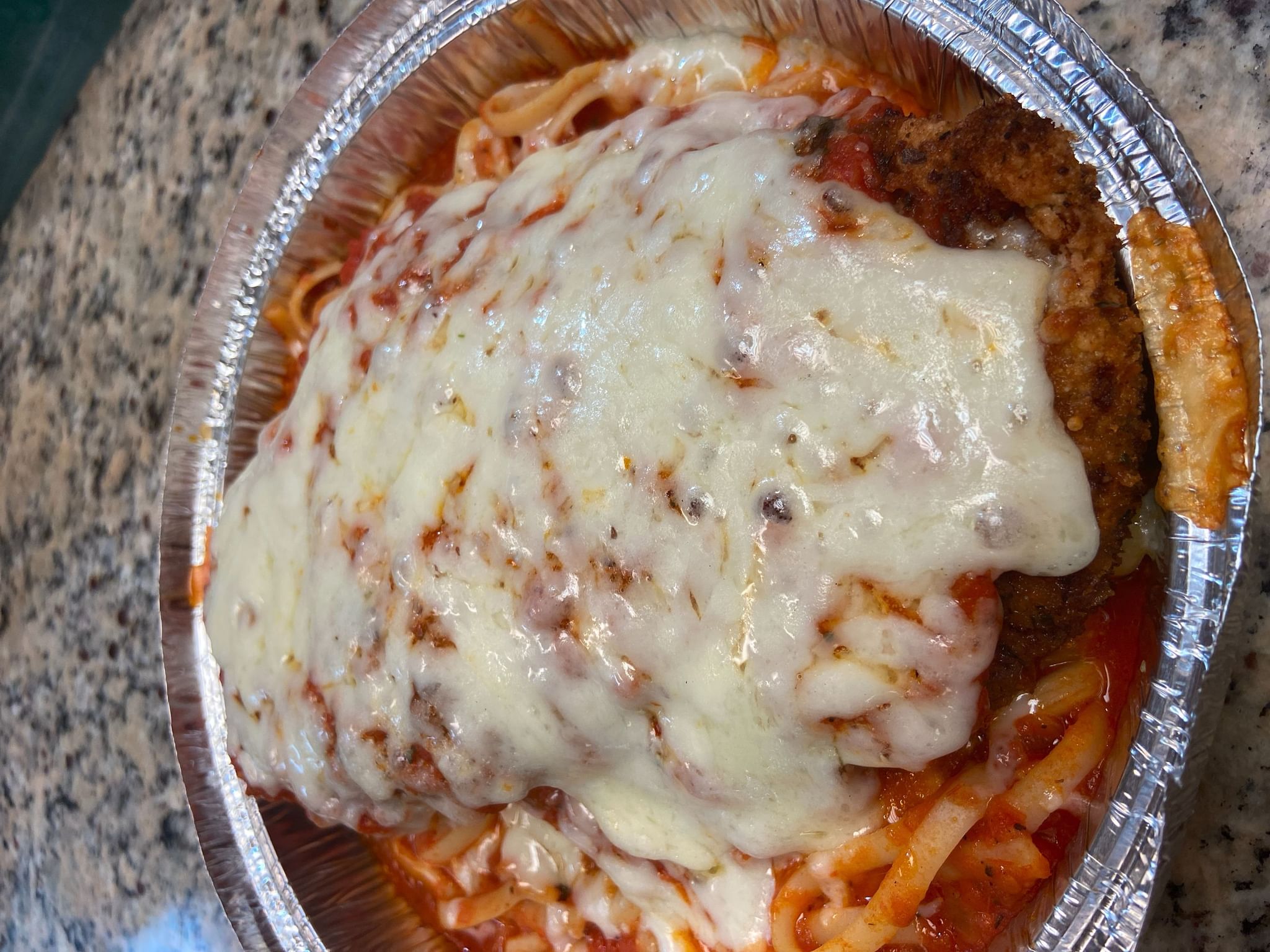 Served with linguini and marinara sauce with melted mozzarella cheese