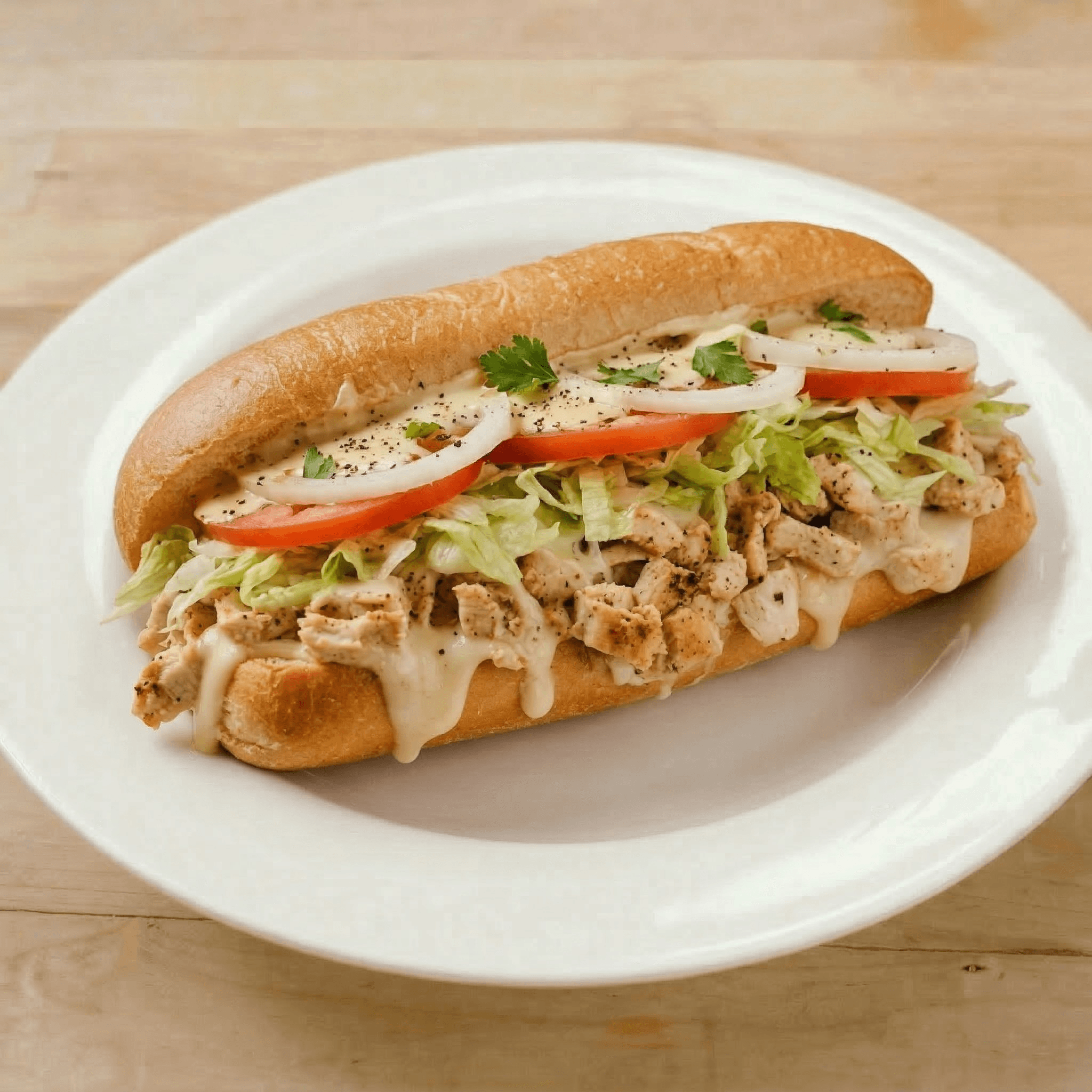 Served on a freshly baked italian roll. onions, green peppers, mushrooms, and broccoli, grilled, then topped with tomatoes & melted provolone cheese.
