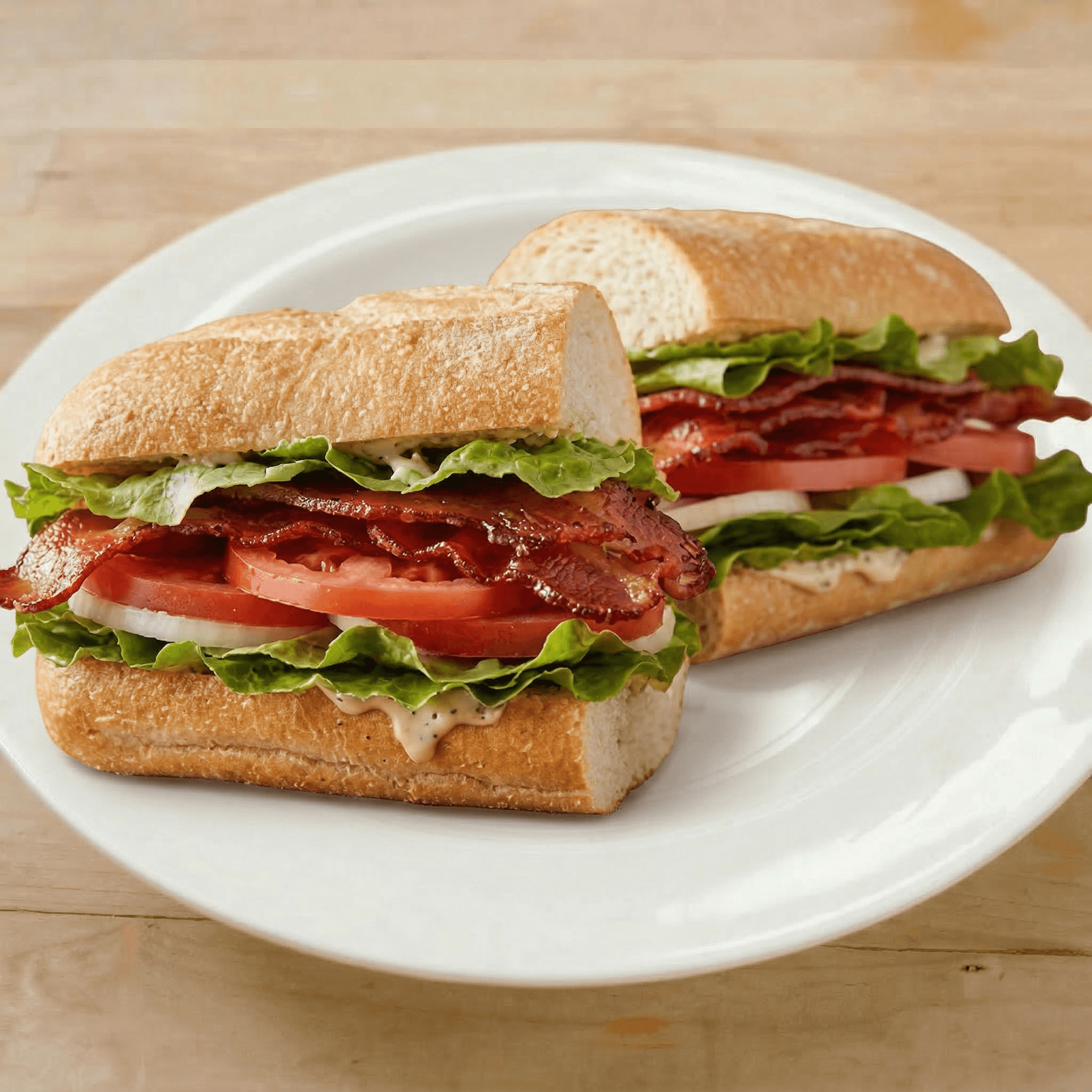 Topped with lettuce, tomato, bacon. served on a bun.