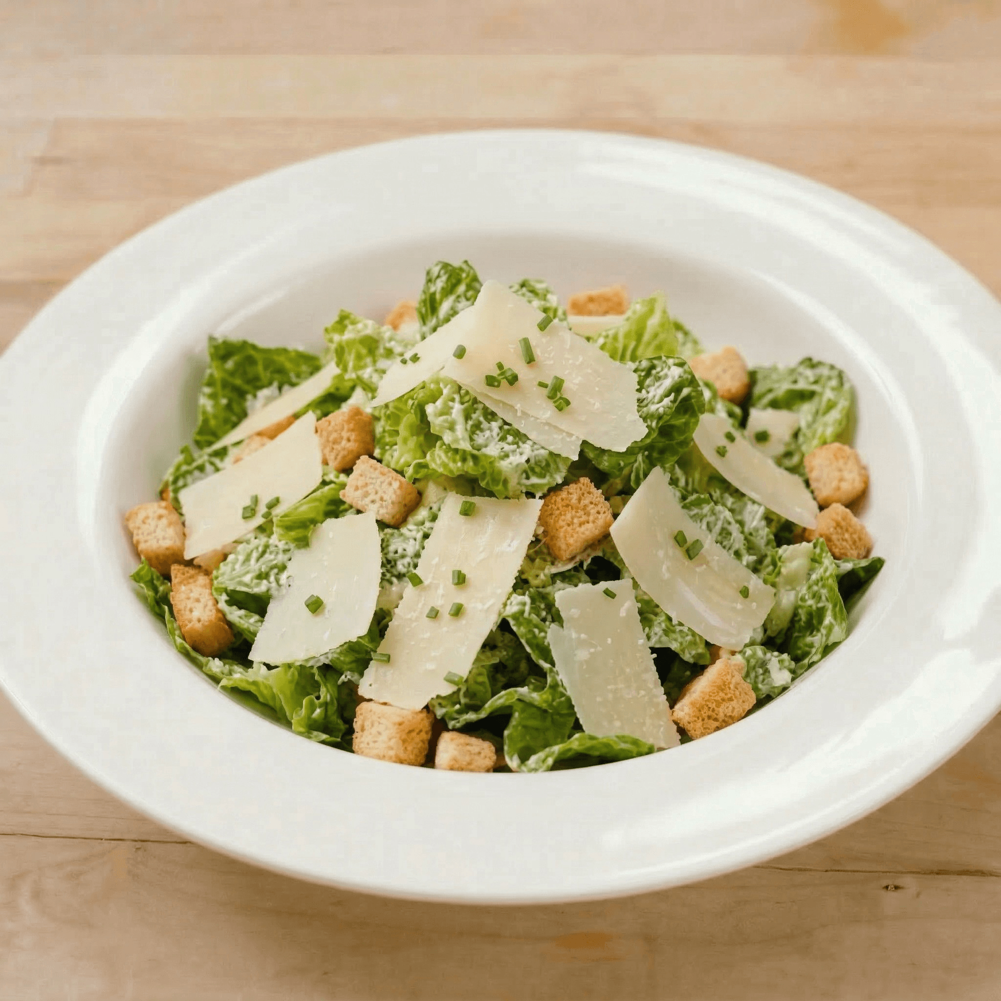 Caesar dressing, romaine lettuce, american cheese topped with parmesan cheese