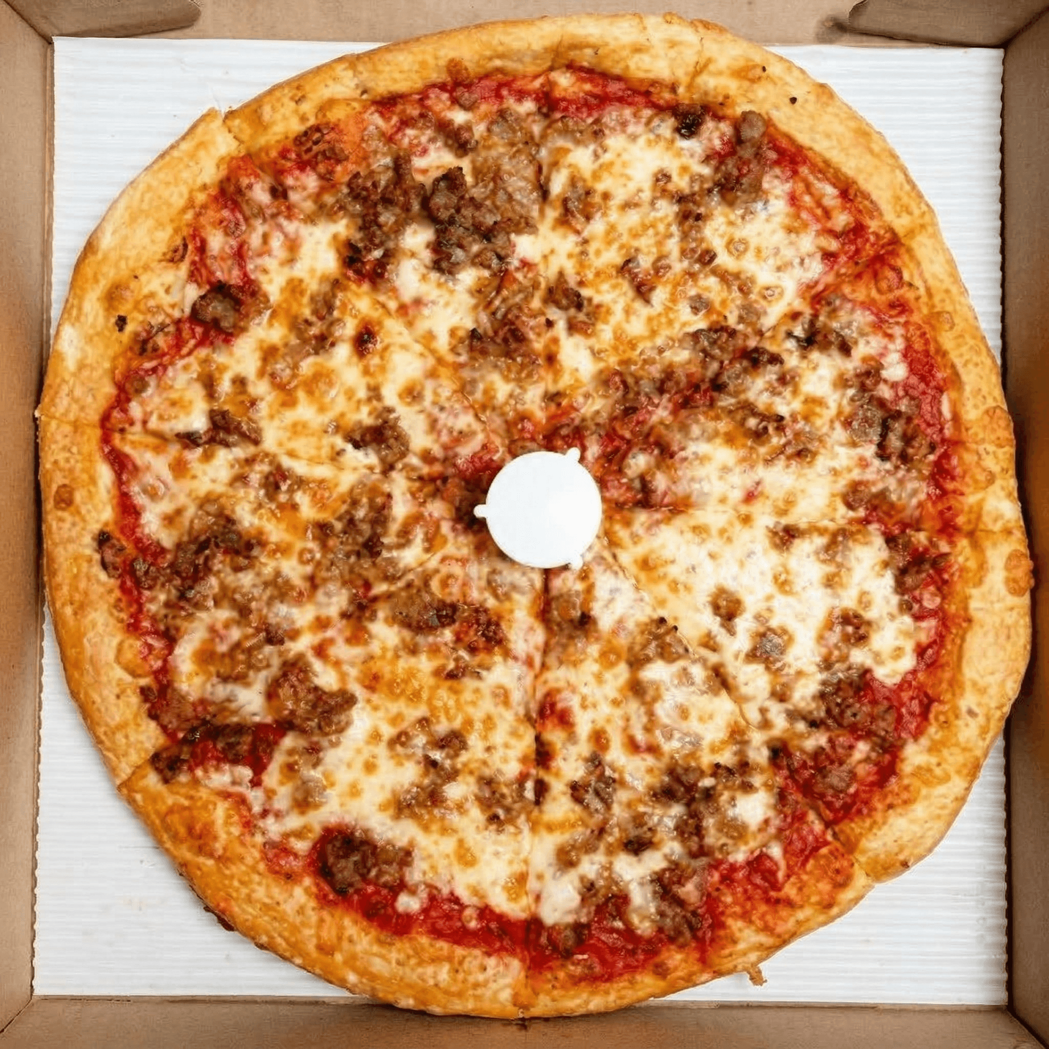 Fried onions, mushrooms, green peppers, extra cheese and sauce