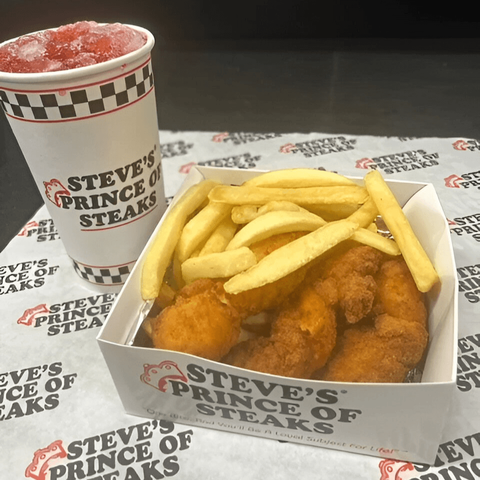 Chicken tenders (3) with fries, choice of 22 oz fountain drink or bottled water. Perfectly cooked in beef tallow. Choose your favorite sauce. Perfect for the young Prince or Princess!