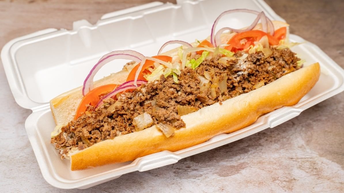 Sliced pieces of beef steak topped with melted cheese, served in a long hoagie roll. Comes with Lettuce and Tomatoes