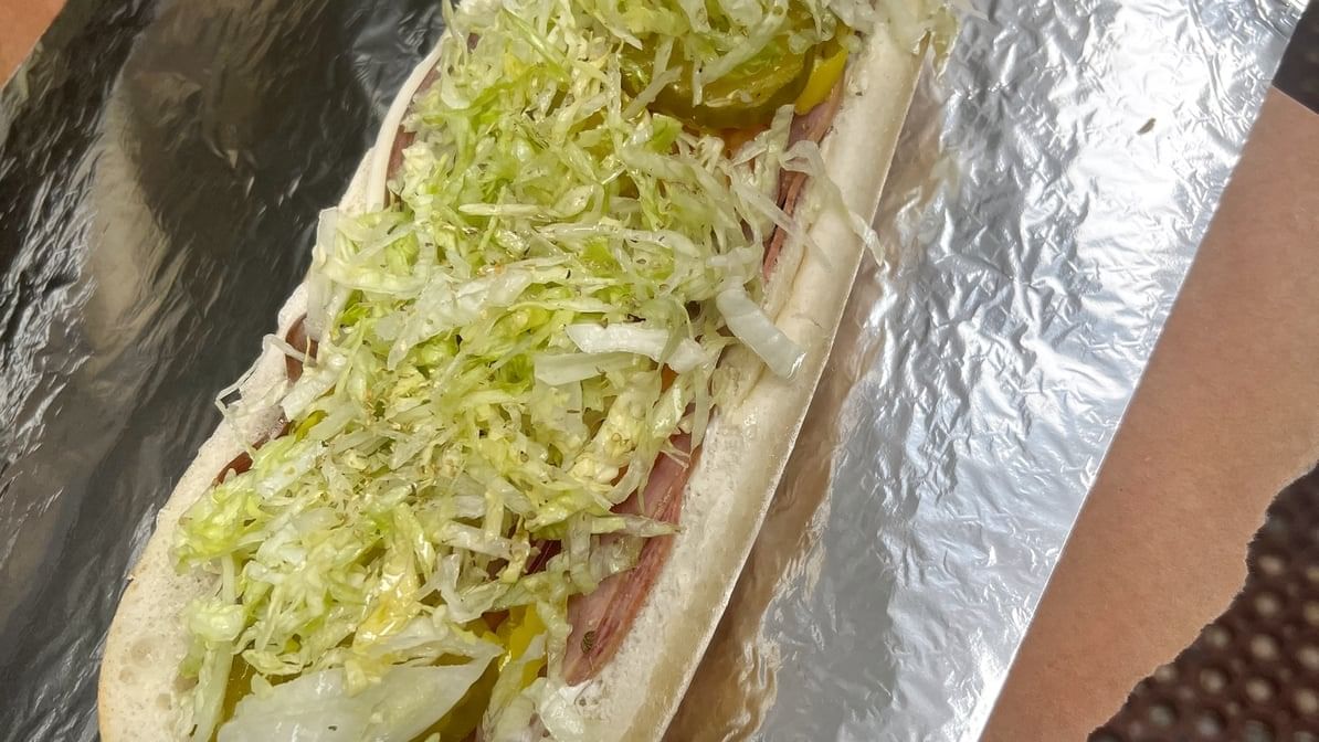 Sliced beef steak and pepperoni with melted cheese, served in a long roll with your choice of toppings
