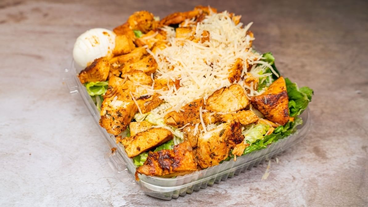 Fresh chicken, romaine lettuce, croutons, fresh grated Parmesan cheese, egg and Caesar dressing