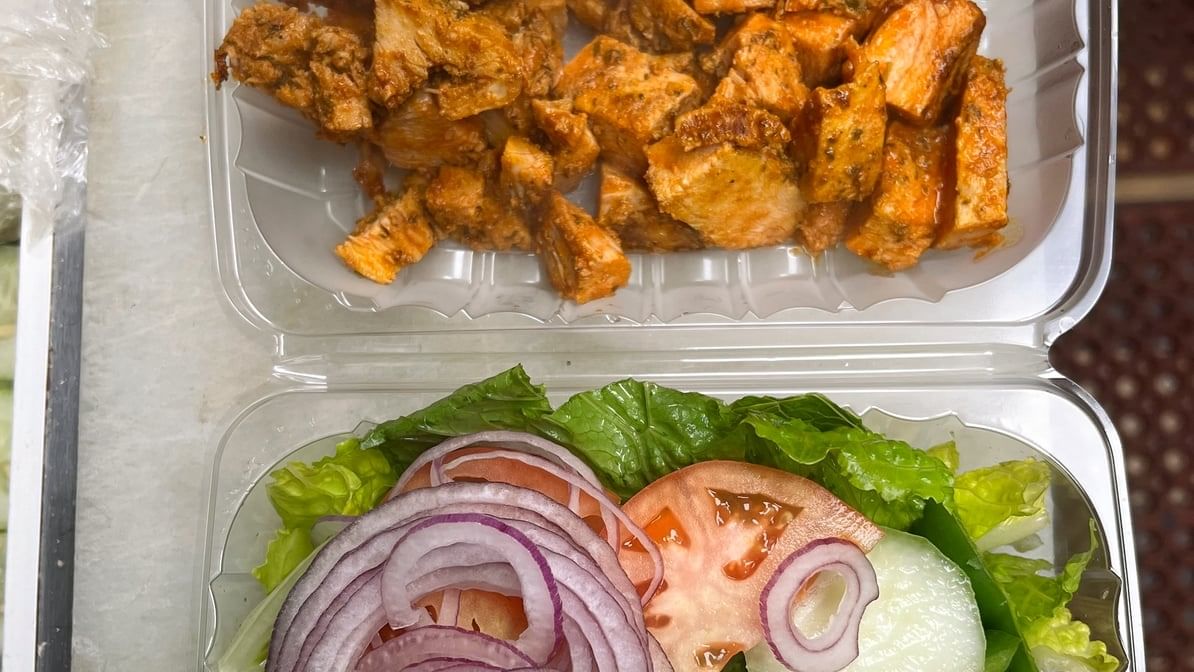 Romaine lettuce, tomato, fresh onion, green pepper, cucumber, egg, grilled chicken and hot sauce