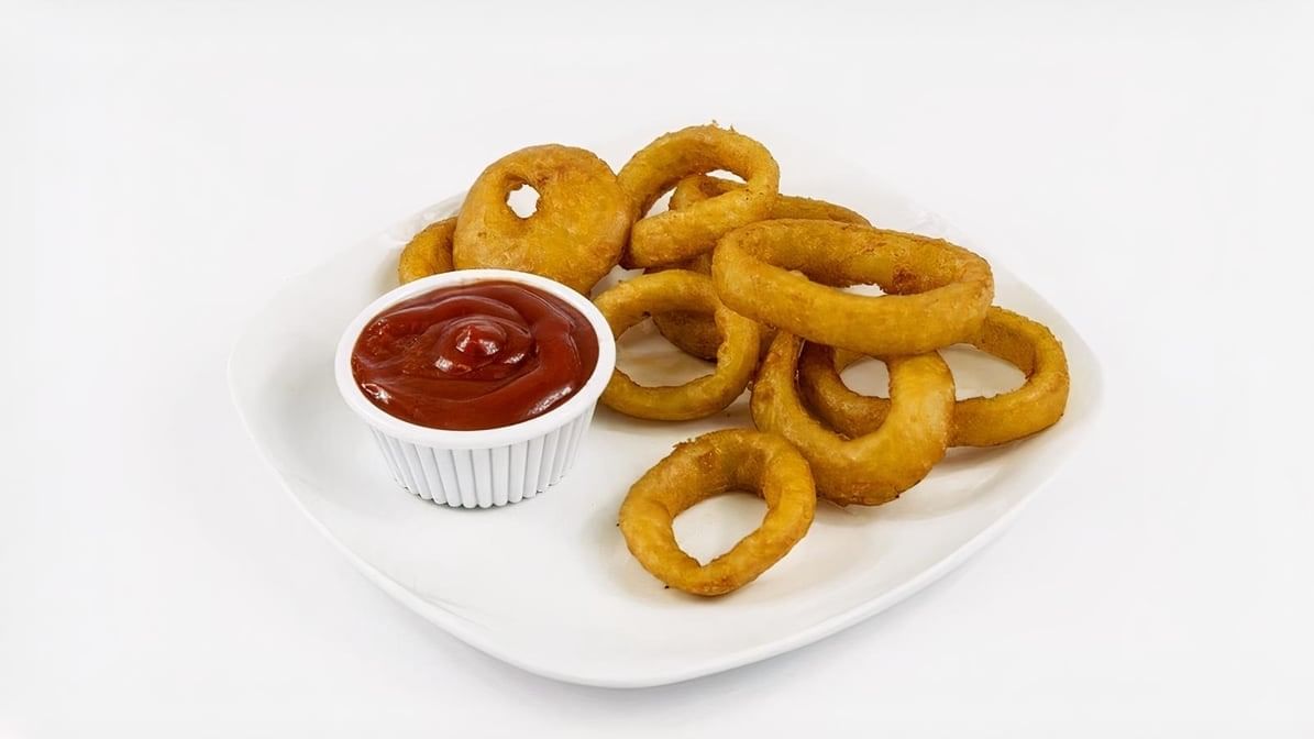 Crispy onion slices deep-fried until golden-brown