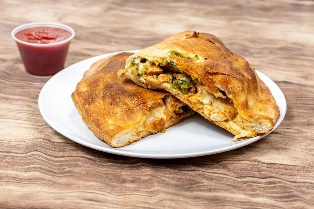 A savory delight filled with Grilled chicken, broccoli, mushrooms, mozzarella cheese and sauce
