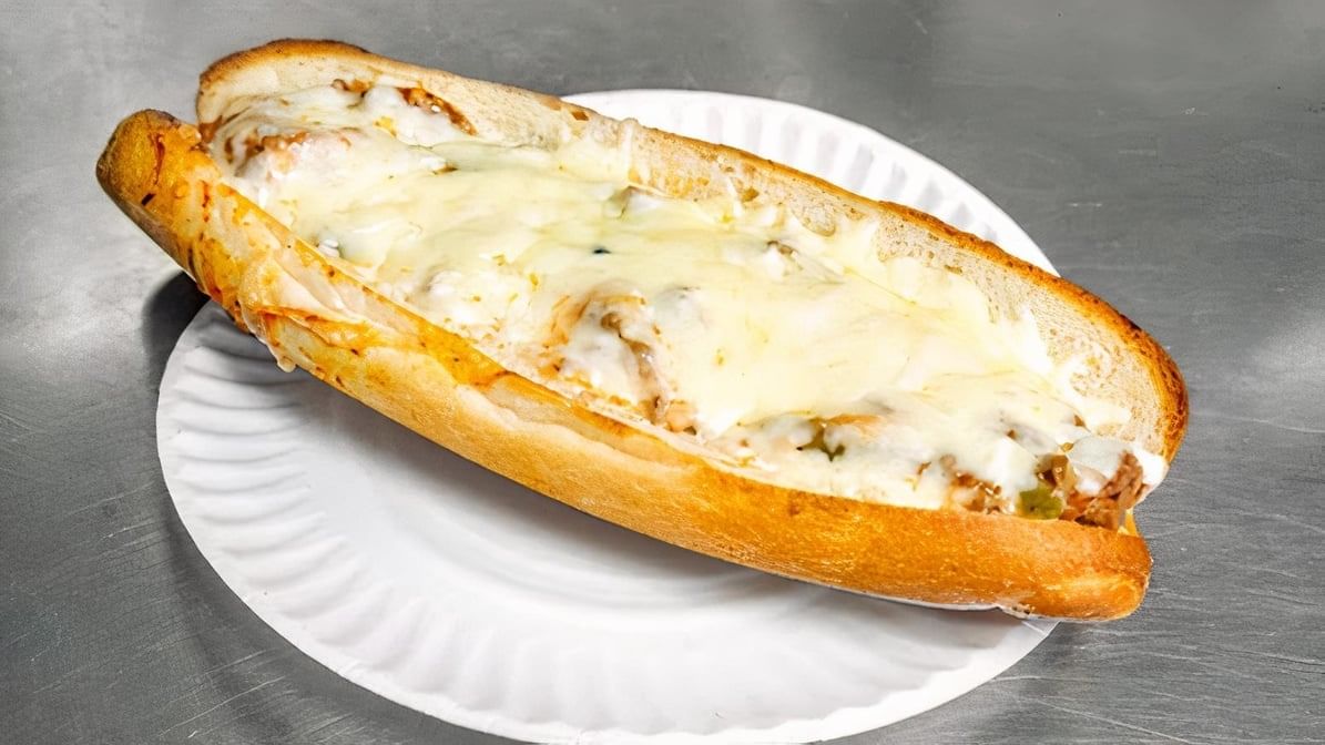 Foot long sandwich topped with pizza sauce and your type of cheese. Toasted to perfection with a cheese pull everyone loves
