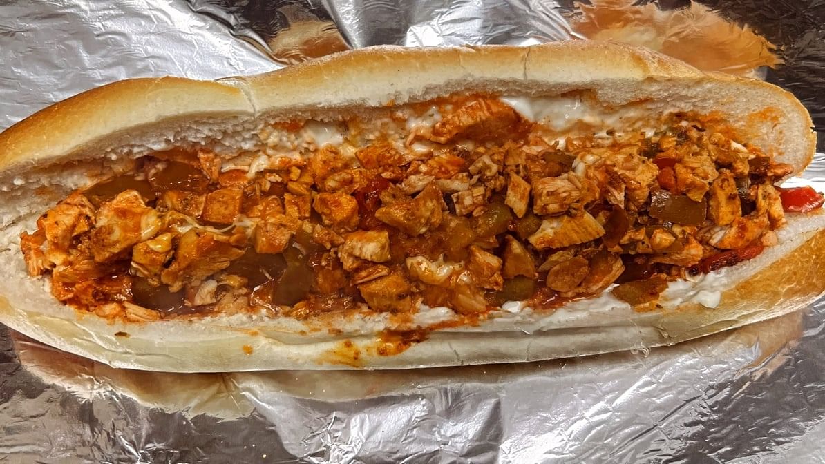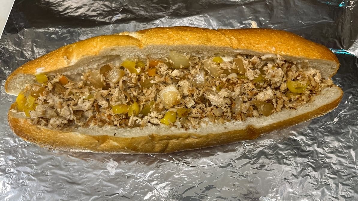 A killer sub packed with chicken steak, topped with melted cheese, served in a long hoagie roll comes with Lettuce and Tomatoes
