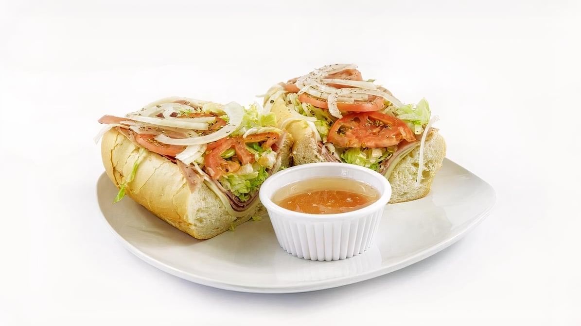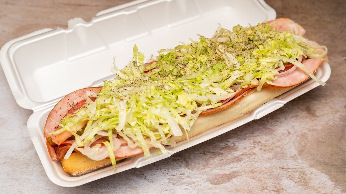 Includes cheese, lettuce, tomato, onions, pickles, mayonnaise, olive oil, hot peppers, sweet peppers, salt and pepper