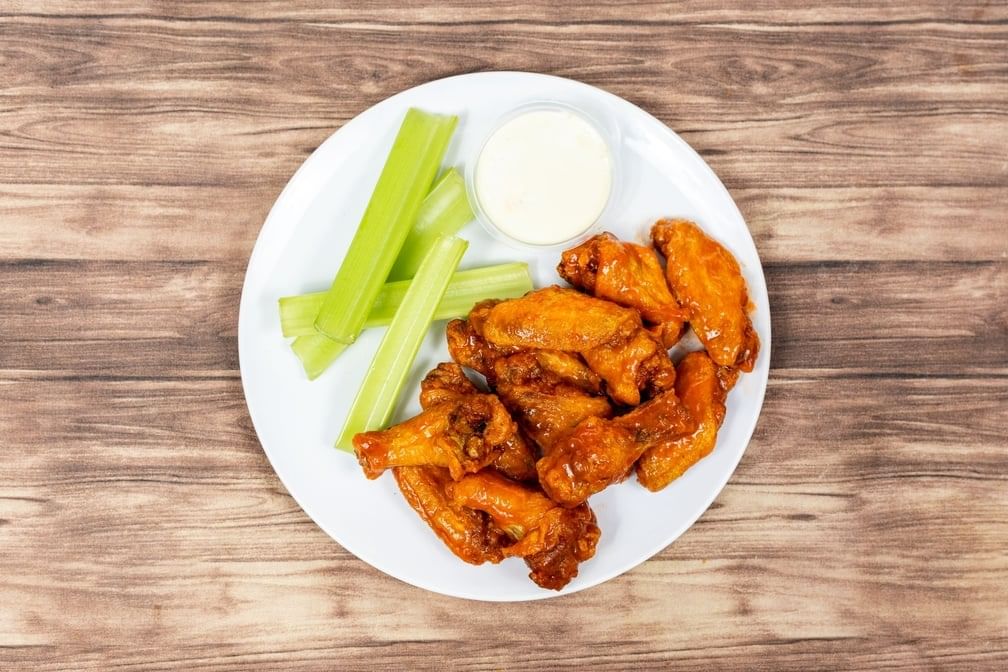 Chicken wings available in multiple quantities: 3, 6, 10, or 20 pieces
