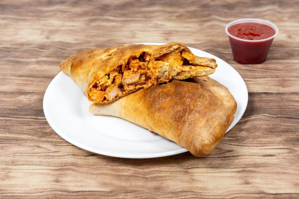 A dough filled with our amazingly seasoned chicken with hot sauce, cheese and tomato sauce