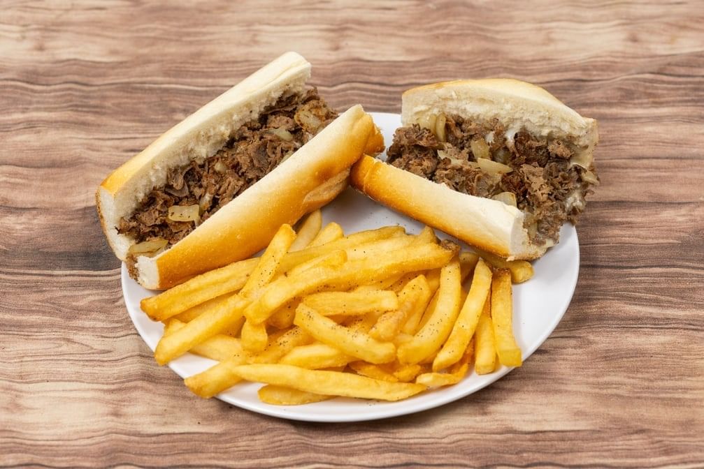 Thinly sliced philly steak, melted cheese and a hint of seasoning on a soft hoagie roll