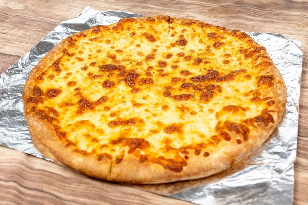 A deliciously baked pizza with our special 2 cheese blend and Alfredo sauce