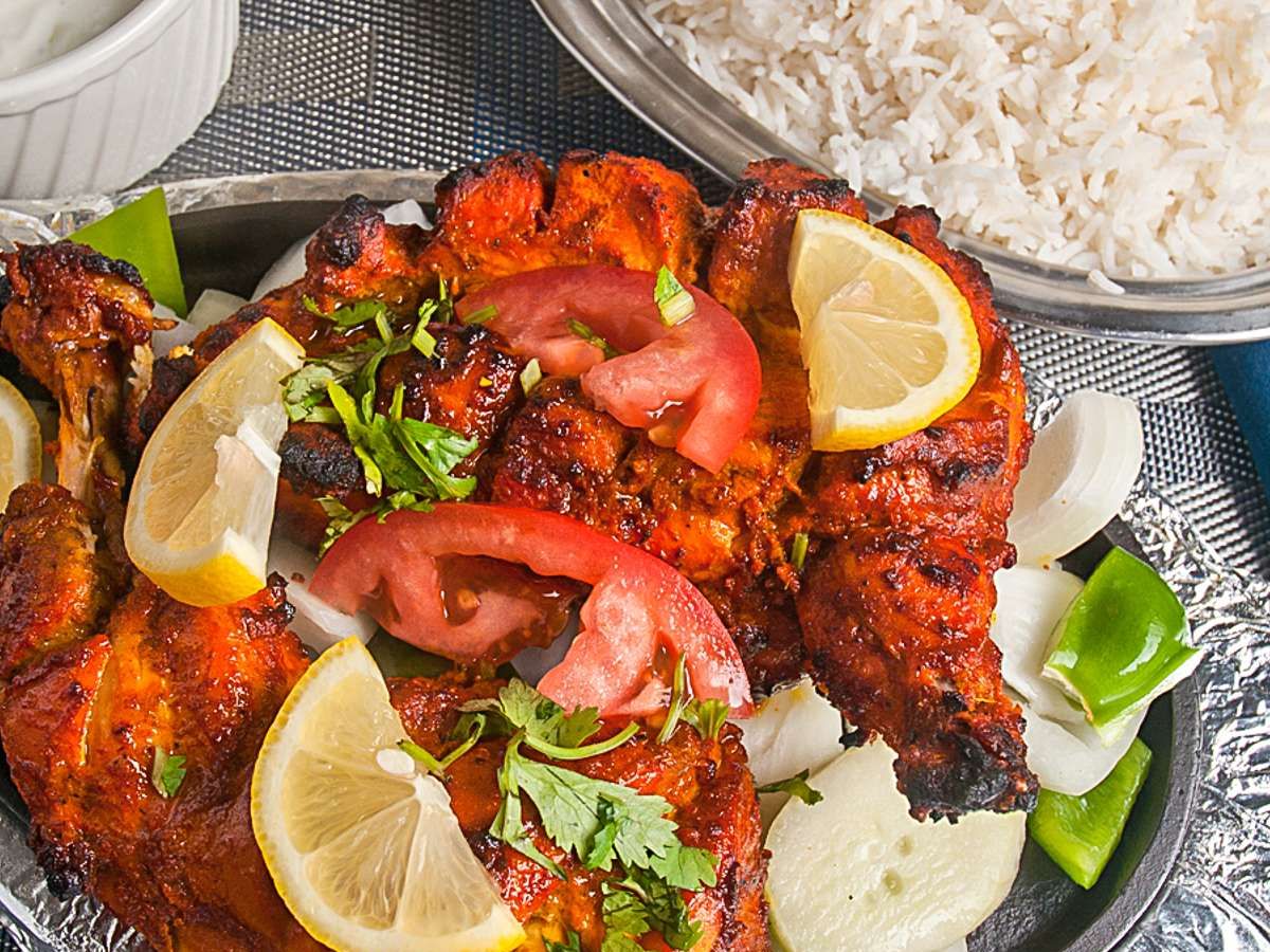 Spring chicken marinated in fresh spices and lemon, then barbequed over flaming charcoal in the tandoor.