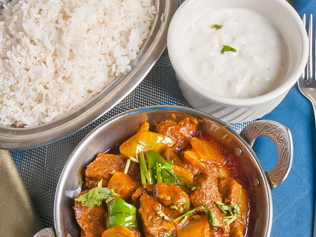 Cooked in yogurt with tomatoes and onion gravy based Indian spices