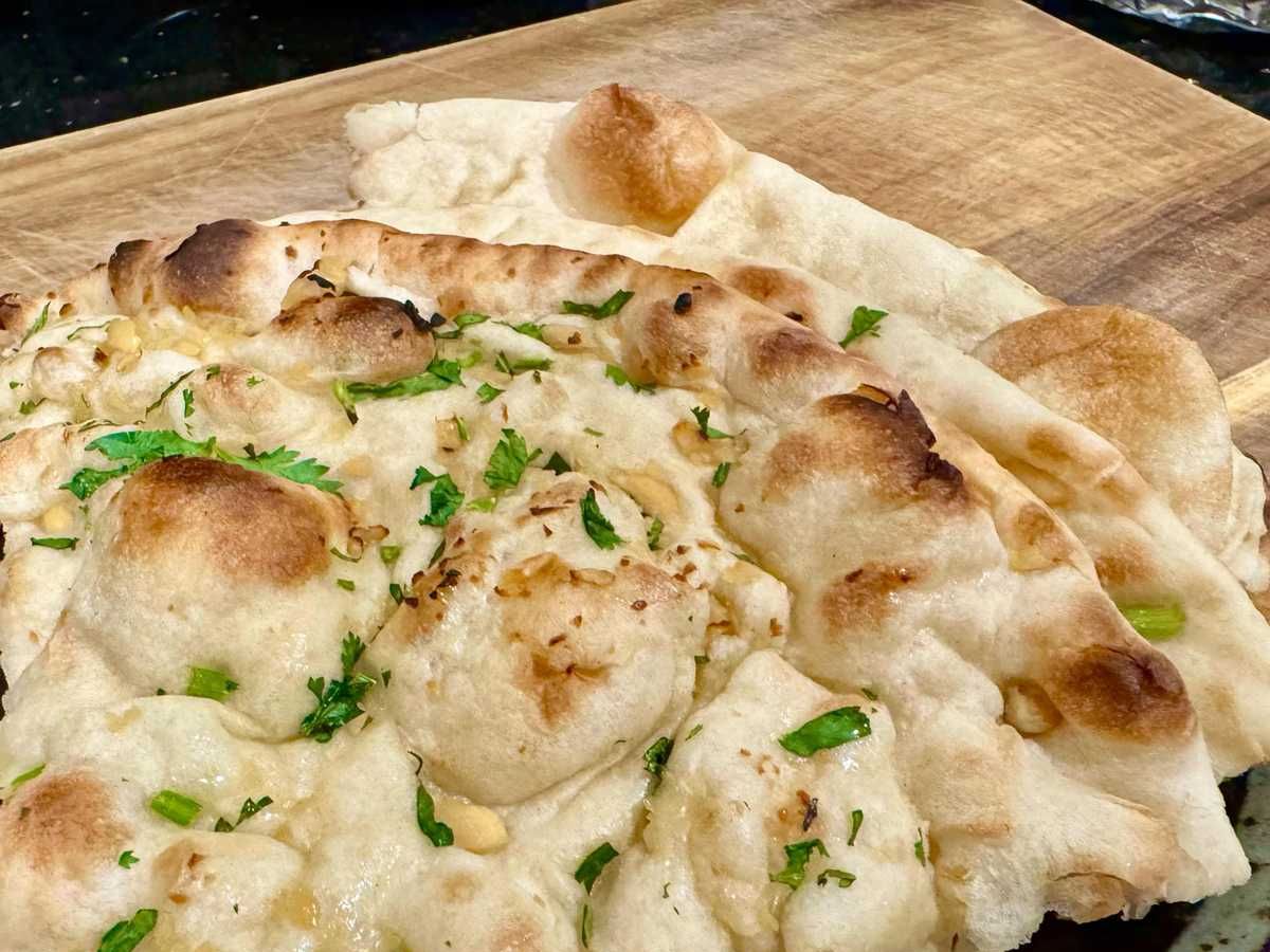 Unleavened bread stuffed with fresh garlic, baked in clay oven.