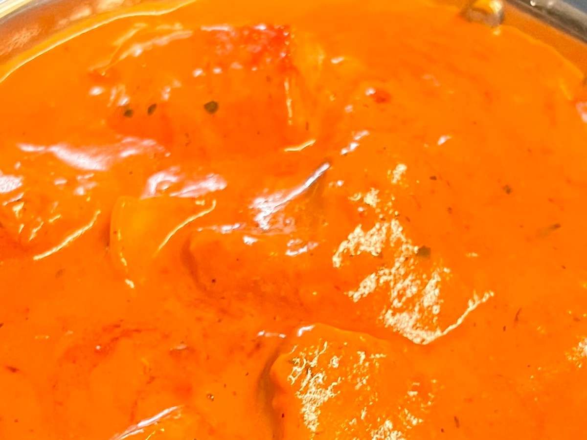 Onion and tomato-based sauce, flavored with ginger, garlic, tomato puree, and a variety of spices.