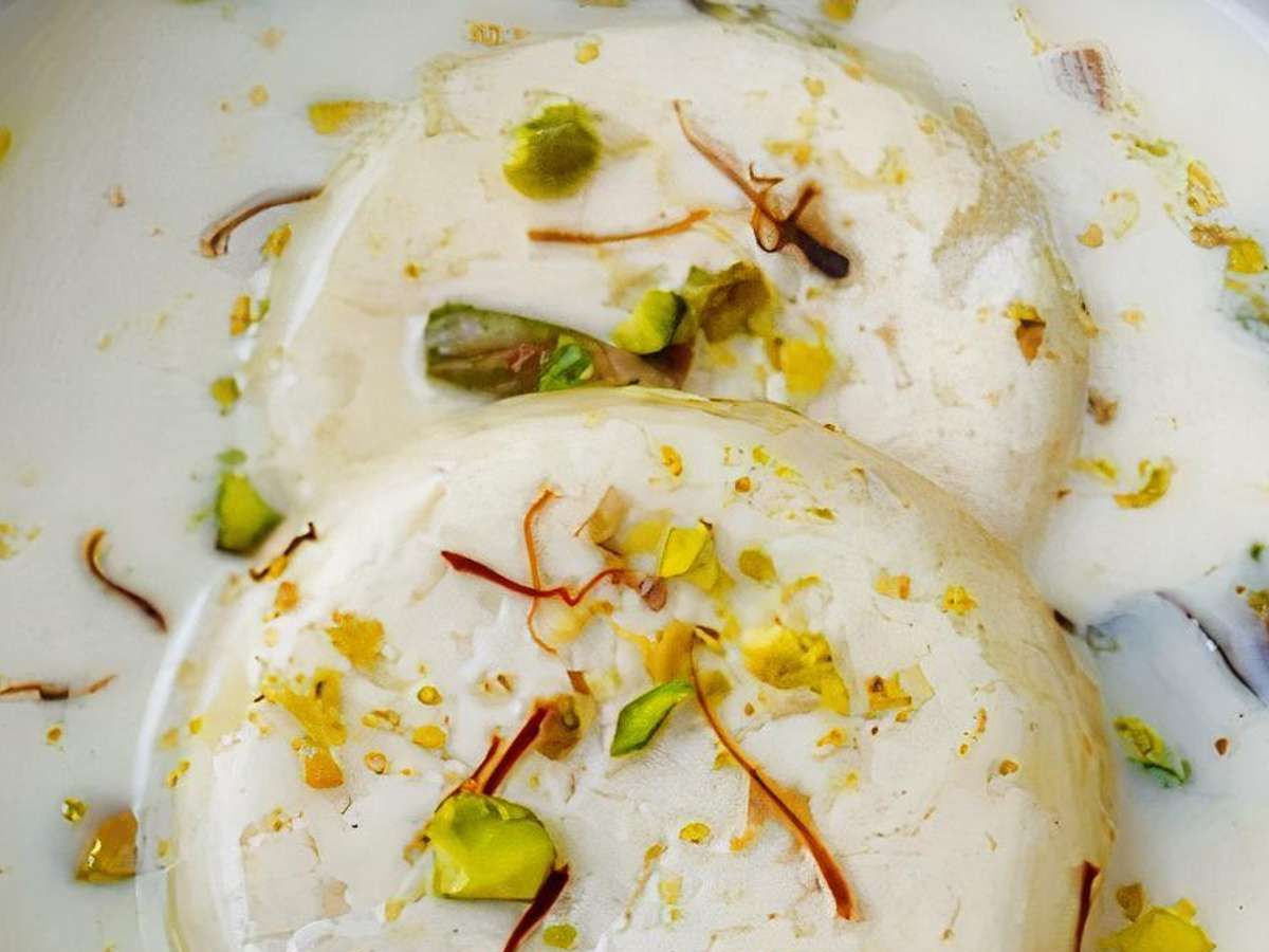 Rasmalai is a Classic Indian dessert consisting of juicy cheese discs served with thickened milk.