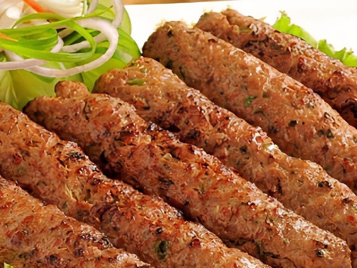 Ground chicken marinated with herbs and spices, then broiled on skewers over charcoal in the tandoor