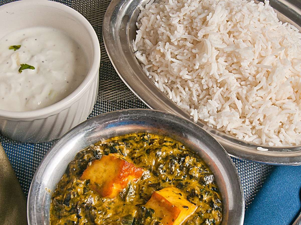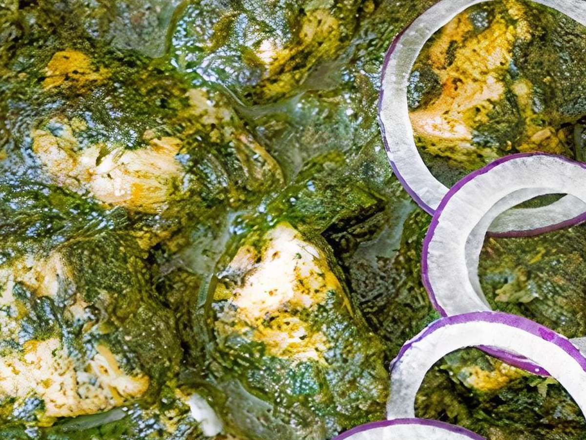 Boneless chicken pieces sauteed with spinach and enhanced with mild Indian spices.