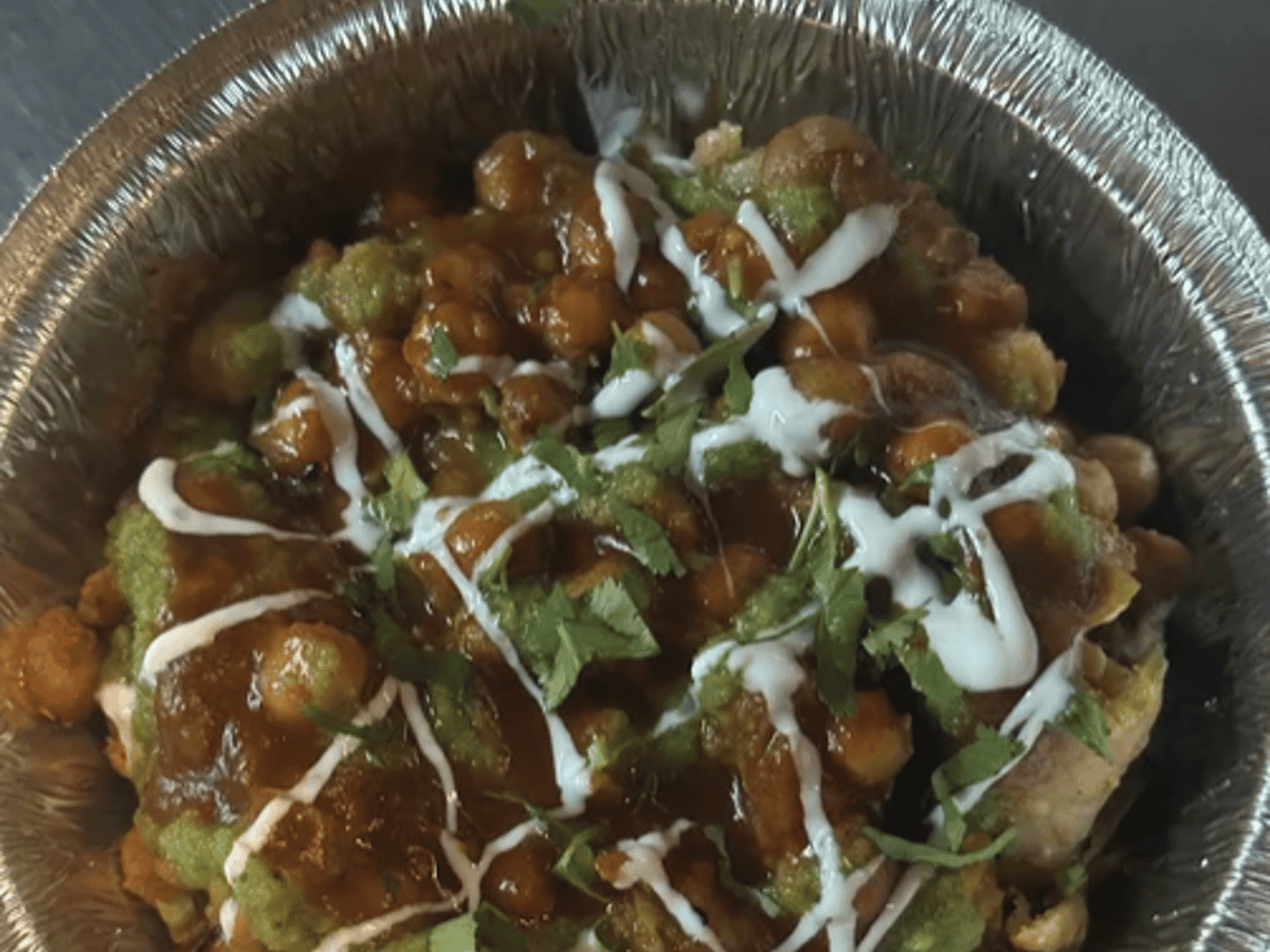 Tangy combination of chick peas, potatoes and onions tossed in tamarind sauce, sprinkled with Indian herbal rick salt spicy.