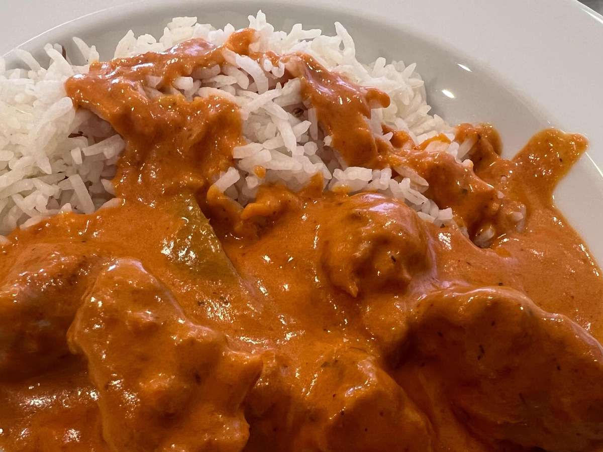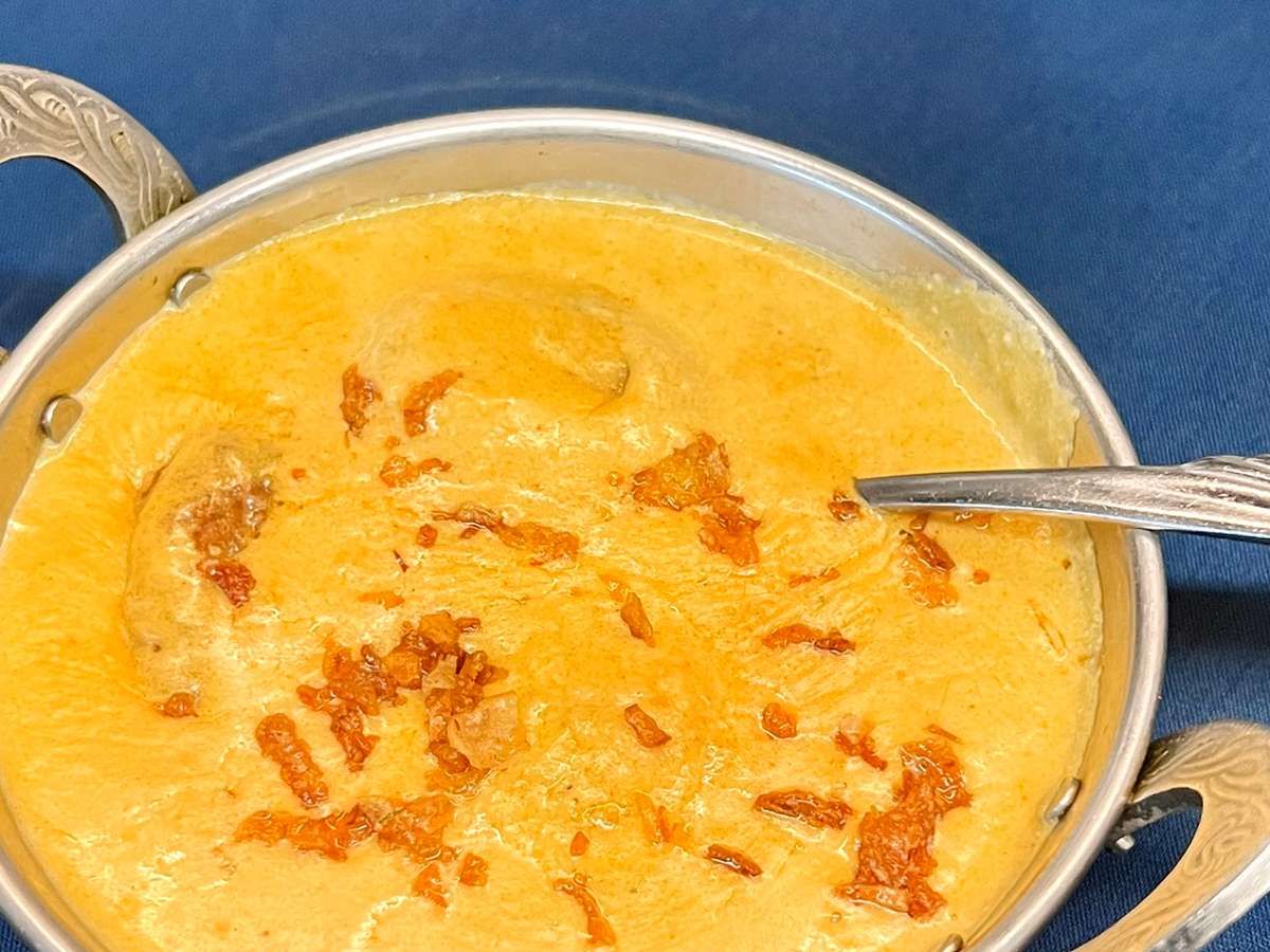 Boneless chicken cooked with cream and almond, sweet spicy.