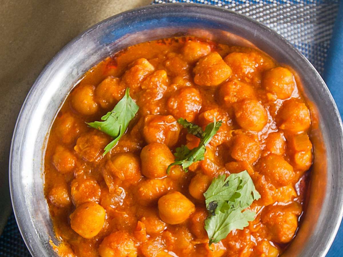 Chick peas and fresh tomatoes cooked in traditional spices.