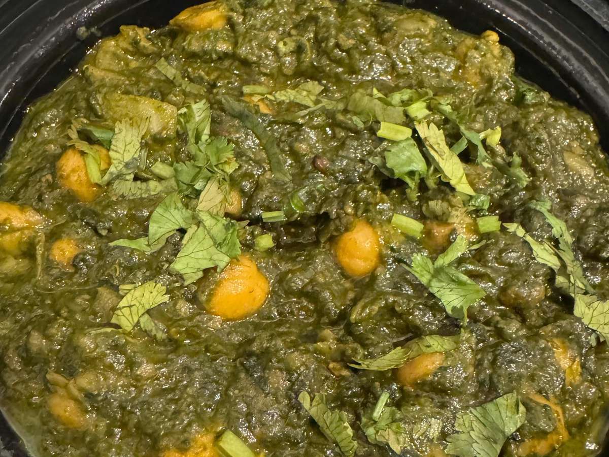 Tender lamb prepared with fresh spinach, coriander and other fragrant herbs.